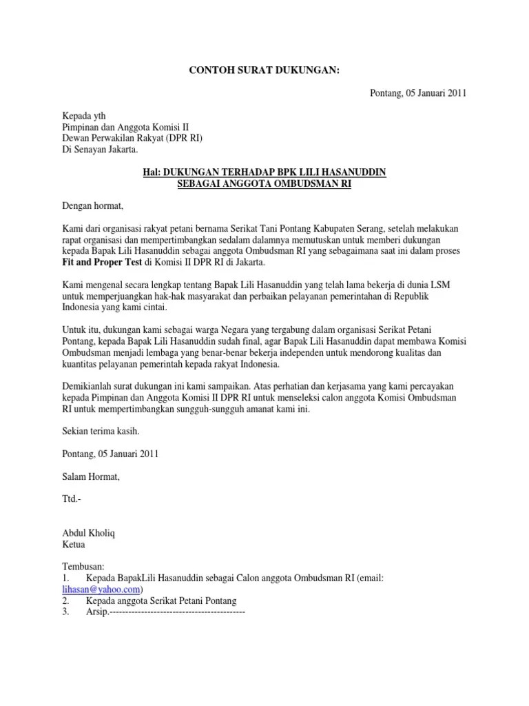 Demikian surat pernyataan dukungan bantuan rehabilitasi ini dibuat dengan . Harkus putra perkasa selaku distributor baja ringan. Jika anda memerlukan surat dukungan tender dari kami selaku distributor baja untuk tender proyek . Text of contoh surat dukungan. Contoh surat dukungan partai surat pernyataan dukungan calon ketua rw puji dan syukur kami panjatkan kehadirat allah swt semoga kita senantiasa .